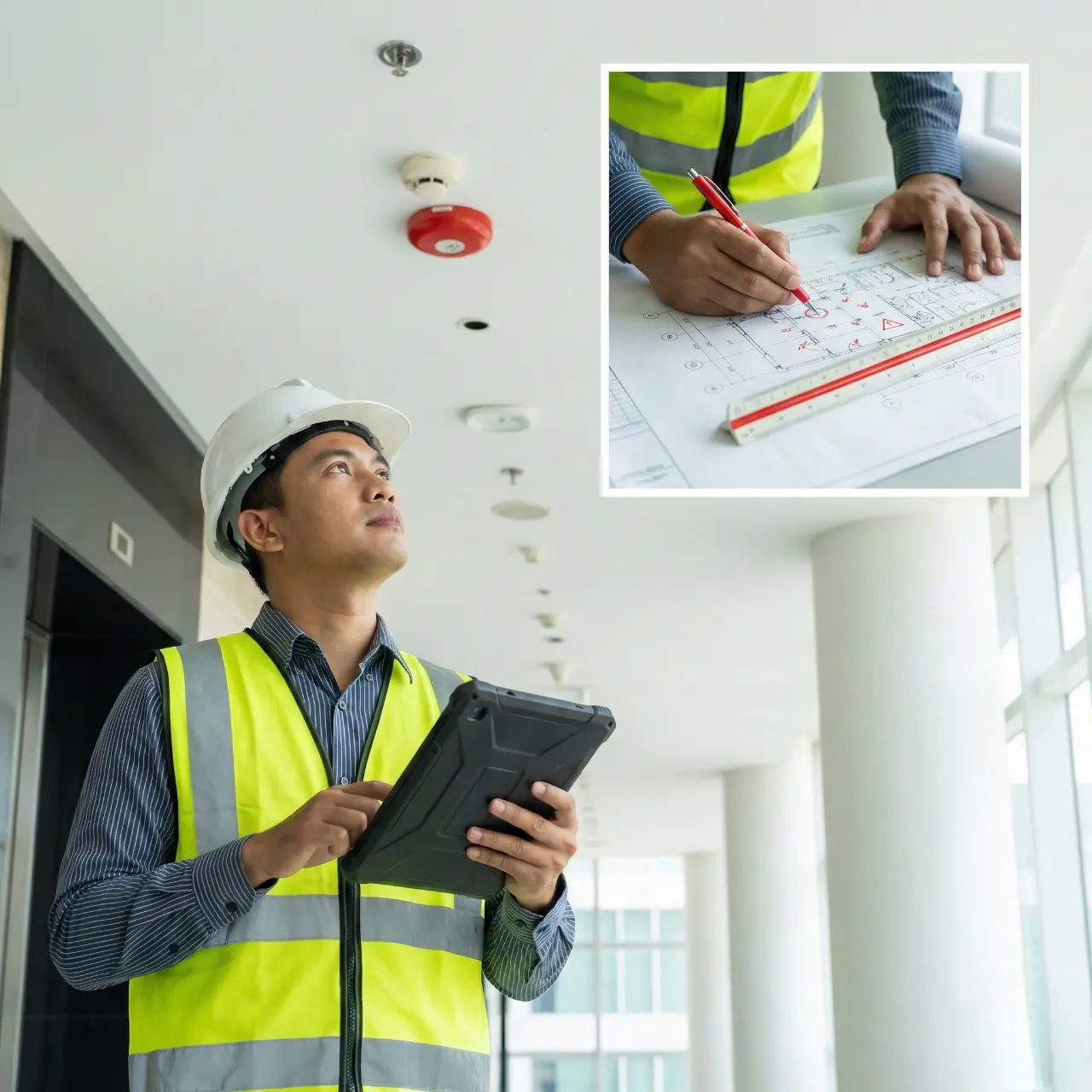 Inspeksi & Audit Lokasi: Survei menyeluruh untuk memetakan titik rawan api dan kondisi eksisting gedung.